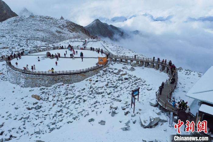 達古冰川位於(yu) 四川阿壩藏族羌族自治州黑水縣境內(nei) ,係罕見的現代山地冰川。風景遊覽區規劃麵積210平方公裏,自然保護區麵積632平方公裏,景區內(nei) 生物多樣性完整,垂直分布明顯。26日,最高海拔超過4800米的達古冰川風景名勝區內(nei) ,冰川、雪山、湖泊相映成趣,上演冰雪奇景,美麗(li) 動人。