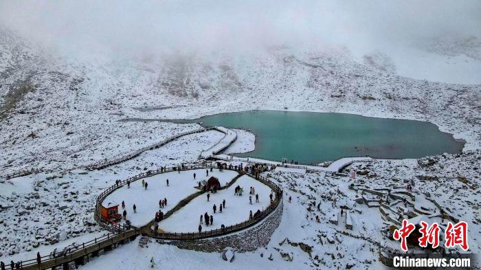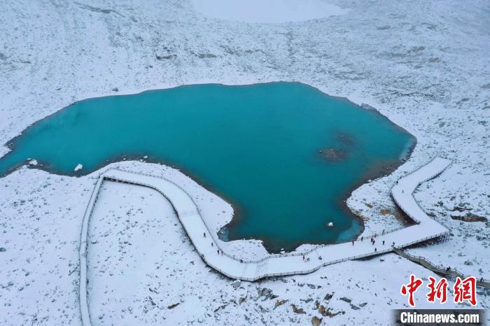 航拍達古冰川美麗(li) 的淚湖。肖蓉 攝