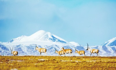 三江源國家公園內(nei) 的藏羚羊群。趙新錄 攝/光明圖片