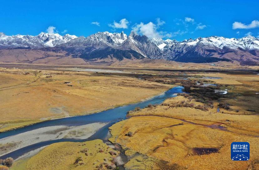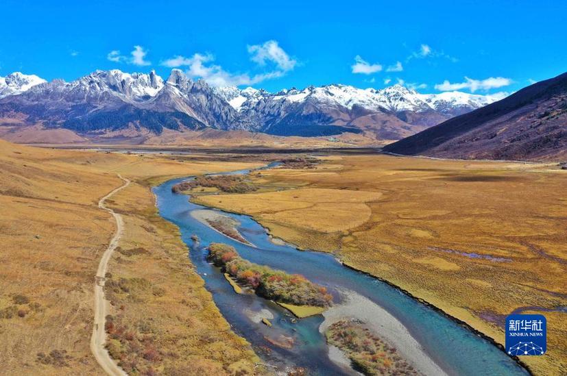 這是10月24日在措普溝景區內(nei) 拍攝的章德草原和紮金甲博神山。新華社記者 劉坤 攝