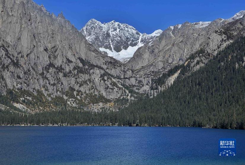 這是10月24日在措普溝景區內(nei) 拍攝的紮金甲博神山和措普湖。新華社記者 劉坤 攝