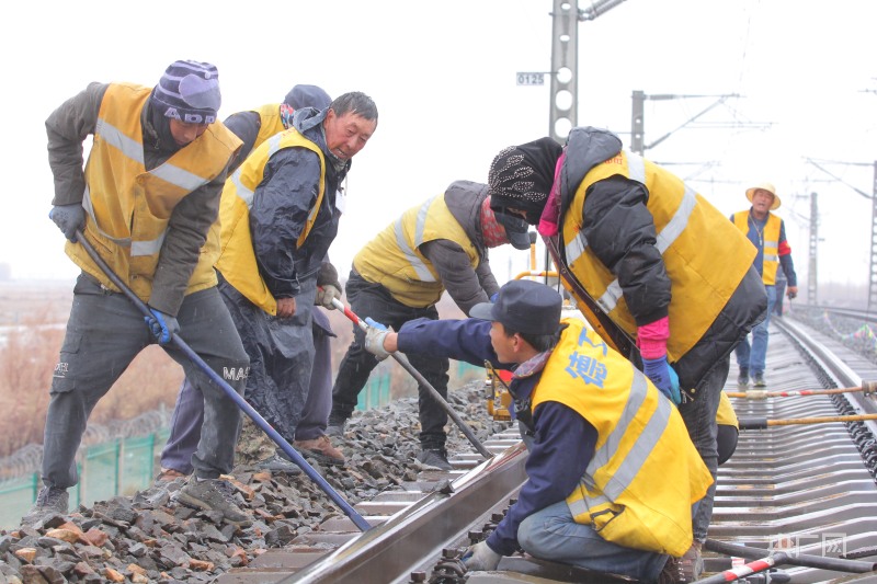 深秋時節,在青海省海西蒙古族藏族自治州,巴音河畔的德令哈市雨雪飄揚。在鄰近德令哈站的鐵路區間上,170餘(yu) 人正在火熱工作中。