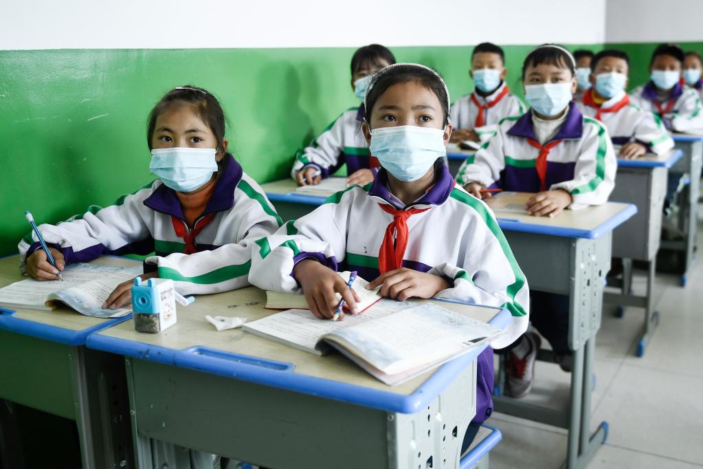 教室裏,孩子們(men) 聚精會(hui) 神,書(shu) 聲琅琅。13歲的紮西拉毛是瑪多縣黃河鄉(xiang) 寄宿製學校五年級學生,“今年9月1日,我們(men) 在溫暖幹淨的新教室迎來新學期。我一定會(hui) 懷著一顆感恩的心,努力學習(xi) 。”