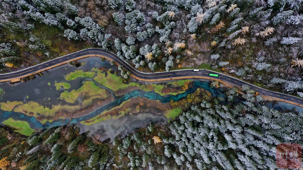 交替時節,四川各地眼下已融合成了多姿多彩的天然調色盤,或是彩林錯落,或是銀裝素裹,彩林與(yu) 白雪相遇相擁,半山彩林半山雪的景致讓人無限向往。
