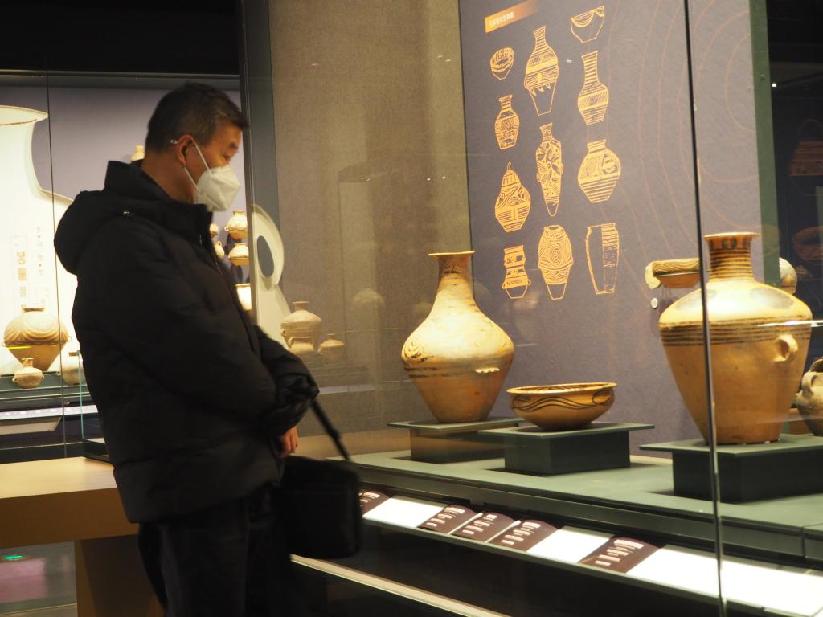 11月24日,青海省博物館試運行,參觀者在青海曆史文物展廳內(nei) 參觀。新華社記者 白瑪央措 攝