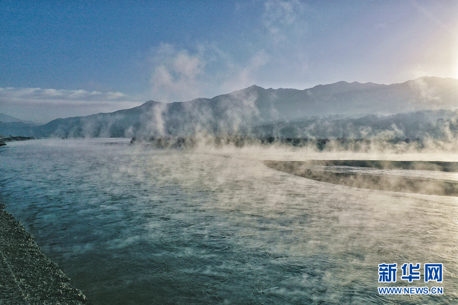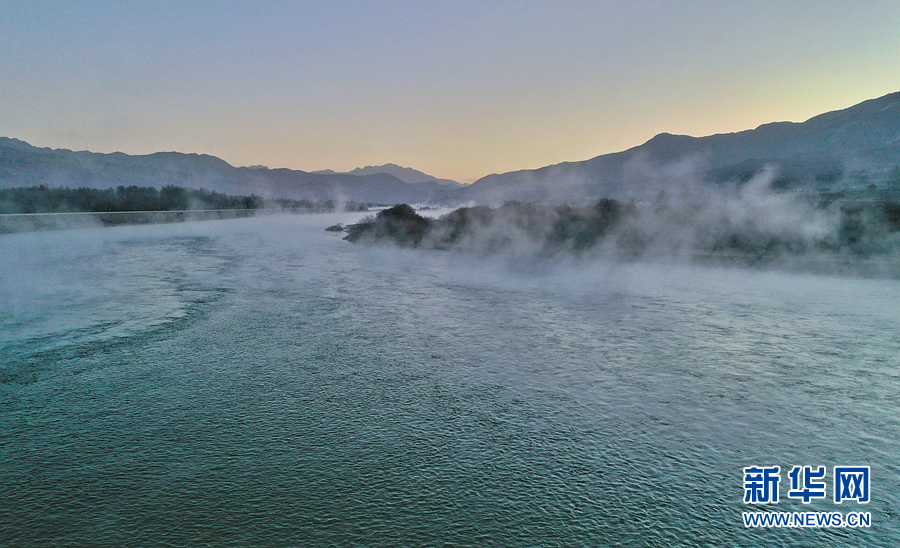 清晨,貴德黃河上升起了霧氣,宛如仙境。新華網 宋忠勇 攝