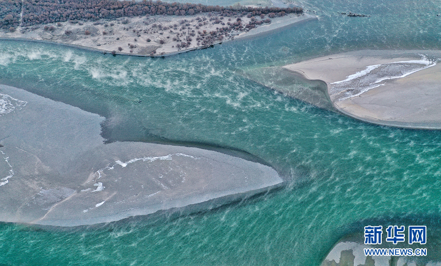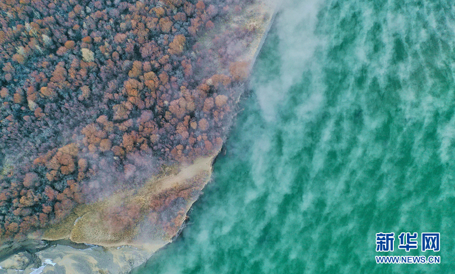 1月2日無人機拍攝的貴德縣千姿湖濕地公園。新華網 宋忠勇 攝