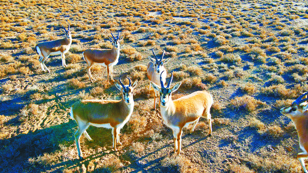 近日,海西蒙古族藏族自治州當地攝影愛好者在祁連山國家公園德令哈片區拍攝到結伴覓食的珍稀野生動物——鵝喉羚。鵝喉羚屬典型的荒漠、半荒漠區域生存的動物,體(ti) 型似黃羊,因雄性在發情期喉部肥大,狀如鵝喉,故得名“鵝喉羚”。