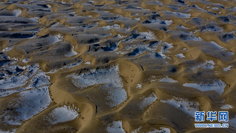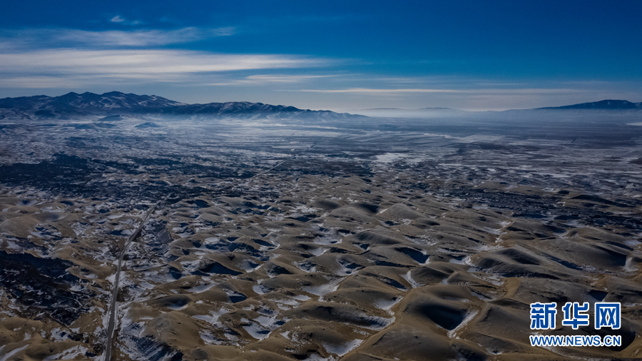 冬日青海湖畔的沙丘被冰雪覆蓋。新華網 宋忠勇 攝
