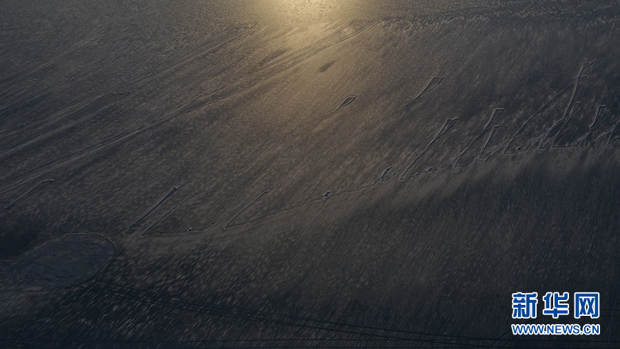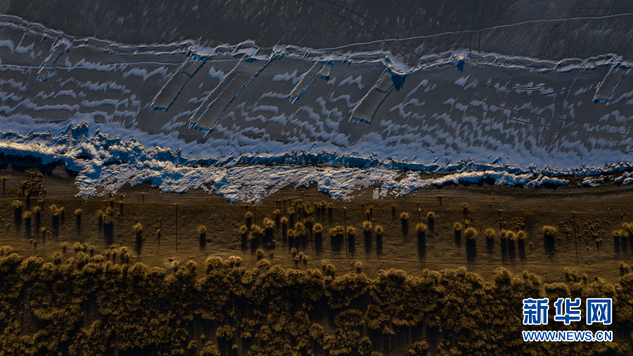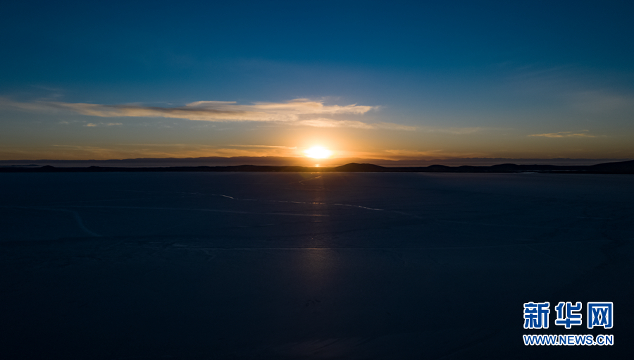 陽光灑在冰封的湖麵上。新華網 宋忠勇 攝
