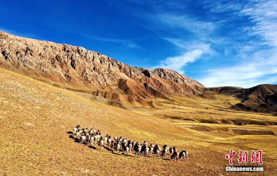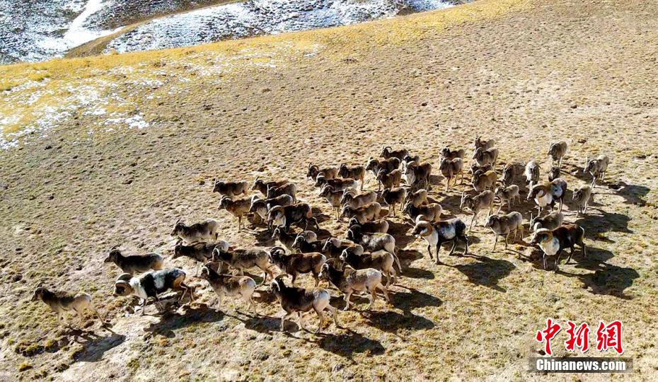 圖為(wei) 航拍成群盤羊奔跑。讚慶 攝