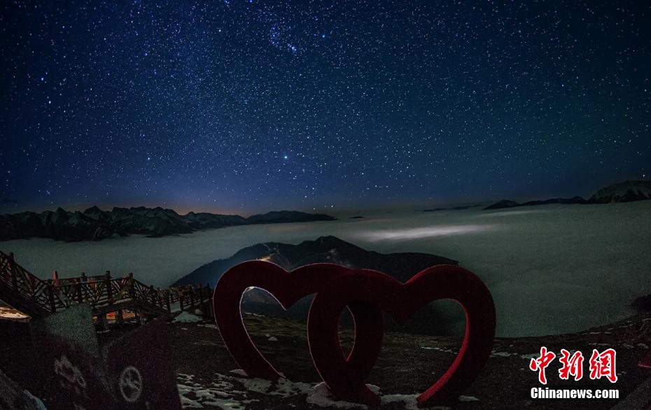 連日來,位於(yu) 四川省雅安市寶興(xing) 縣磽磧藏族鄉(xiang) 的達瓦更紮景區雪後放晴。期間,日出、藍天、雲(yun) 海、雪山、星空等美景如畫,夢幻飄渺,蔚為(wei) 壯觀。