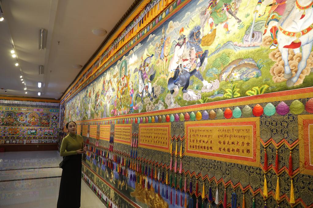 平滑的線條、細膩的針腳、傳(chuan) 統的繡法、新穎的設計……繡坊內(nei) ,繡娘們(men) 聚精會(hui) 神穿針引線,拉毛葉忠仔細檢查繡娘們(men) 的作品,用藏繡技藝講述格薩爾王的故事是一次創新。