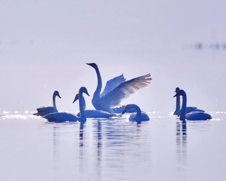 化隆縣新時代文明實踐中心天鵝湖攝影環保誌願服務隊隊長李玉峰說,每年10月大天鵝來黃河濕地過冬,數量從(cong) 起初的30多隻增加至100餘(yu) 隻,美麗(li) 的“天鵝湖”成為(wei) 攝影愛好者的流連忘返之地。