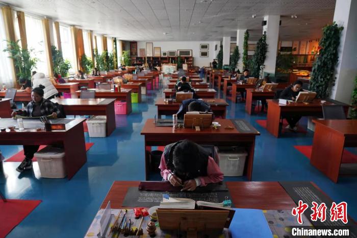 跟彭合日一樣,傳(chuan) 習(xi) 中心有53名學員長期學習(xi) 工作,年齡最大的學員近60歲,其中殘疾學員有3人。近幾年,傳(chuan) 習(xi) 中心已培訓青海省內(nei) 外金汁書(shu) 寫(xie) 人員達300餘(yu) 人,包含尖紮縣尖紮灘鄉(xiang) 八個(ge) 村莊、措周鄉(xiang) 、坎布拉鎮等農(nong) 牧民。