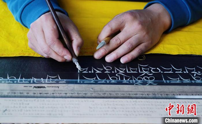 28歲的彭合日是傳(chuan) 習(xi) 中心的一名優(you) 秀學員。“來這裏工作已經七年時間。金汁書(shu) 寫(xie) 經文是藏族的傳(chuan) 統文化,但在特製的藏紙上抄寫(xie) 經文還是有難度。我們(men) 要根據紙的尺寸,設定藏文字體(ti) 大小,老師就一筆一畫給我們(men) 教,直到能獨立抄寫(xie) 經文。”對於(yu) 這份家門口的工作,彭合日很滿意,每個(ge) 月能拿到4000多元工資,抄寫(xie) 經書(shu) 越多工資也會(hui) 相應有增加,這也將是自己走向社會(hui) 的一門手藝。