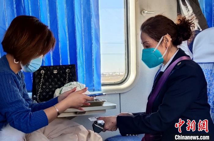 圖為(wei) 小慢車列車值班員郇靜為(wei) 乘客補票。候寶霞 攝