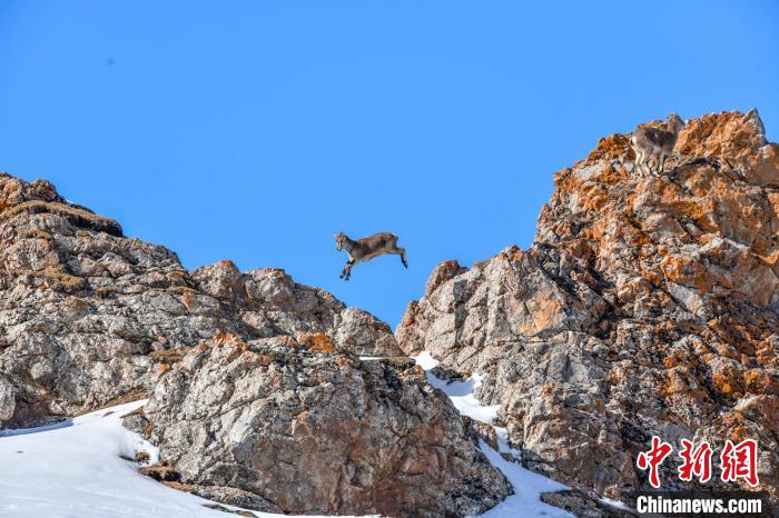 圖為(wei) 郝進芳的作品《跨越》。青海省祁連山自然保護協會(hui) 供圖