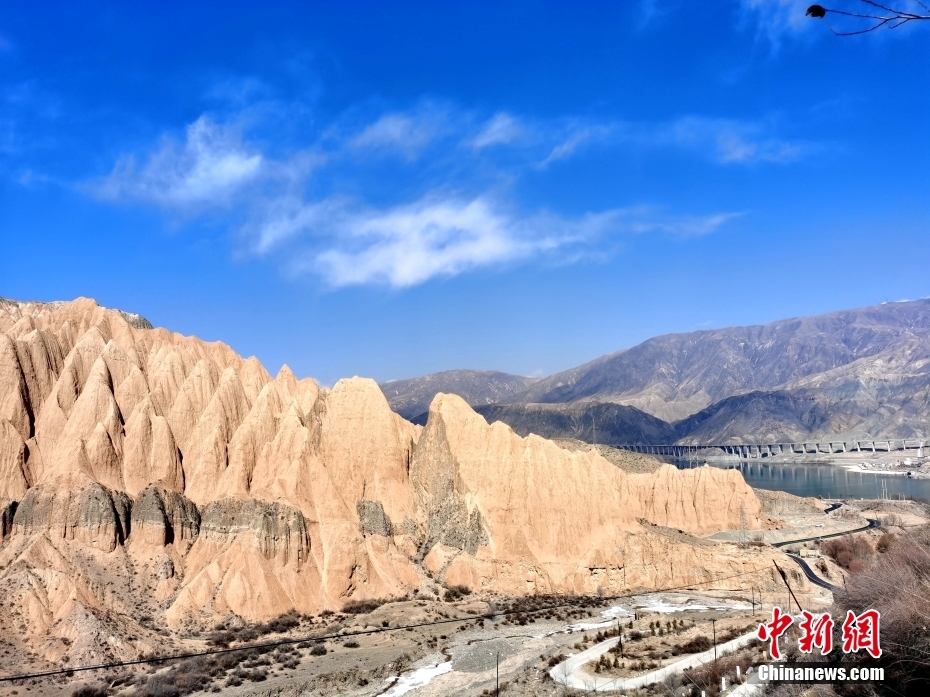 圖為(wei) 2月22日在青海省尖紮縣黃河岸畔拍攝的丹霞地貌。中新社記者 張添福 攝