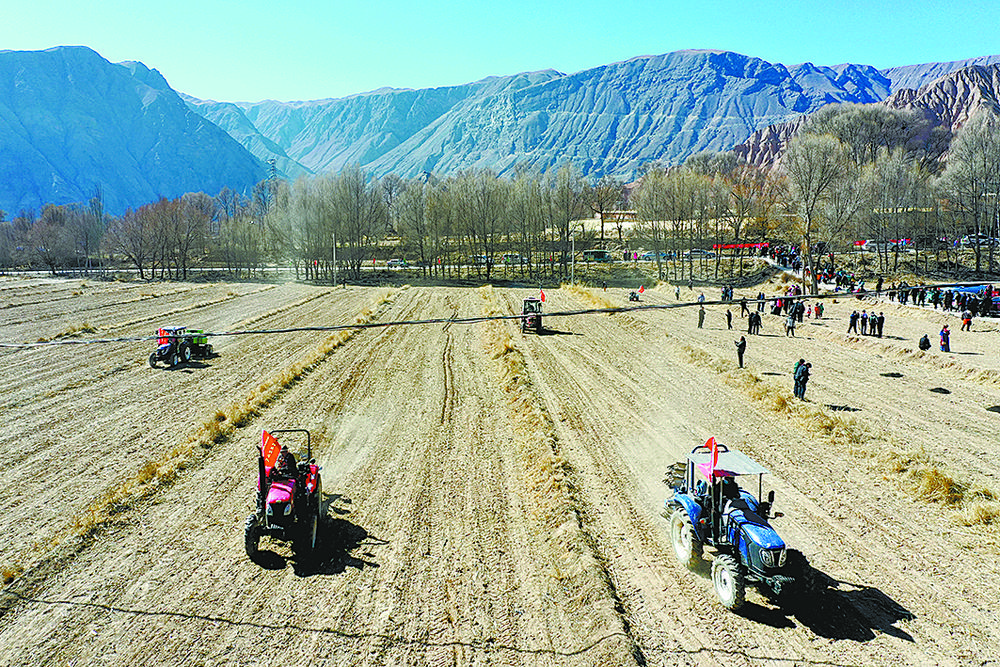 2月底,青海省黃南藏族自治州尖紮縣的黃河穀地區域,氣候轉暖,當地藏族民眾身著傳統服飾,播撒優良品種、施有機肥料,口中默念祈求五穀豐登,以傳統勞作方式,開啟春耕“第一犁”。[詳細]