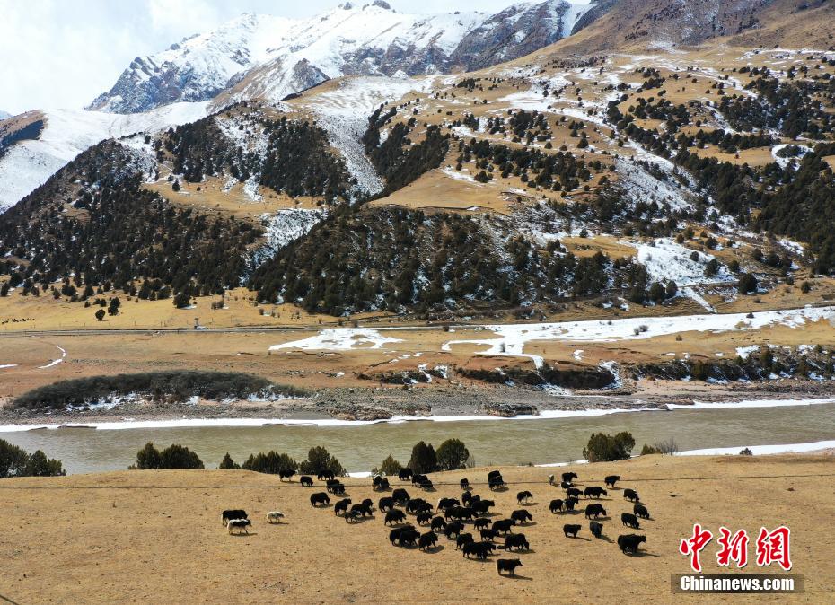 2月27日,一場降雪為(wei) 青海省玉樹藏族自治州三江源國家公園瀾滄江源園區披上銀裝,藍天白雲(yun) ,雪山江河,犛牛在金燦燦的高山草場上悠閑散步,形成一幅幅多彩的生態美景圖。馬銘言 攝