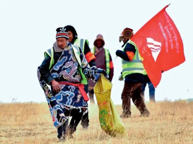 “‘薩’(藏語)是雪豹,‘鬧’(藏語)是岩羊;放牧是巡護,轉湖就監測;見到動物要記下……”索南文毛邊撿拾垃圾,邊念叨從(cong) 生態管護員培訓班上學到的口訣。