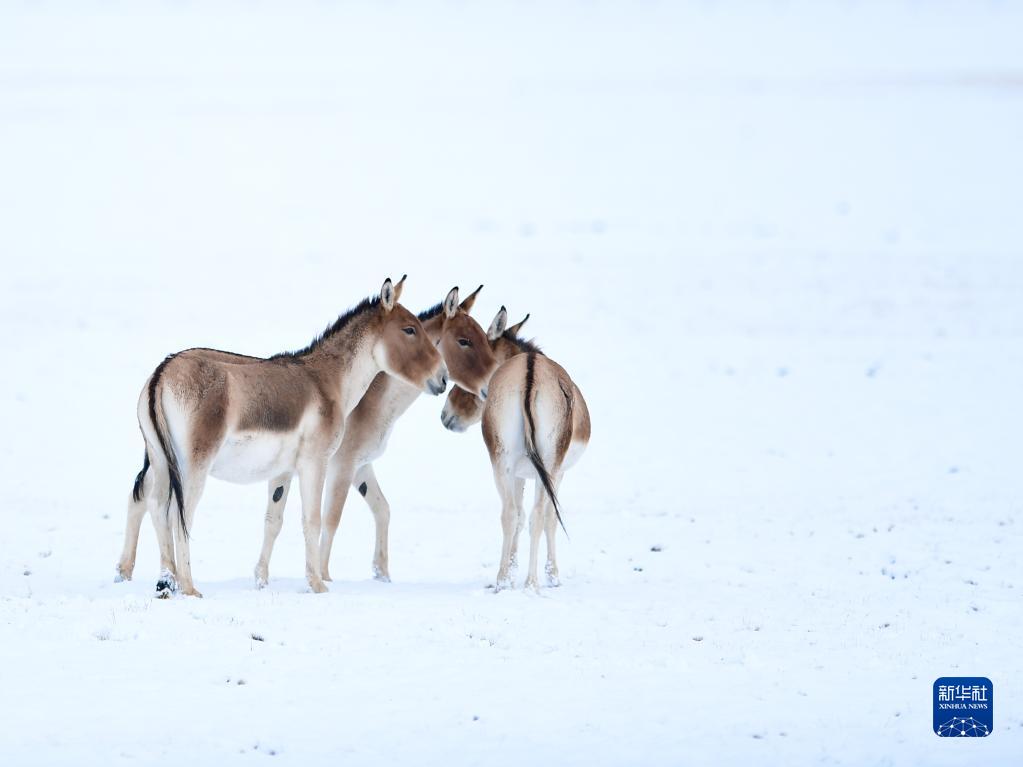 2021年10月20日,在青海省果洛藏族自治州瑪多縣境內(nei) 的三江源國家公園黃河源園區內(nei) ,藏野驢在活動。新華社記者 張龍 攝