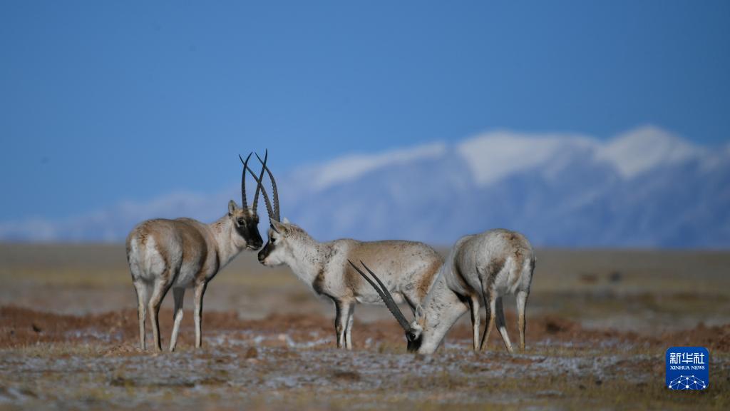 2022年1月20日在可可西裏拍攝的藏羚羊。新華社 潘彬彬 攝