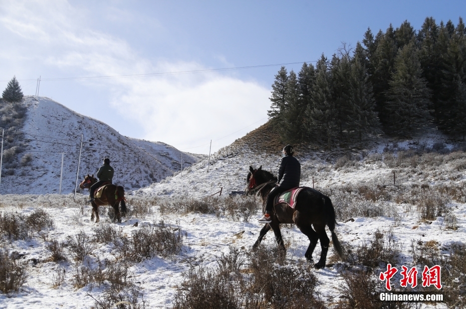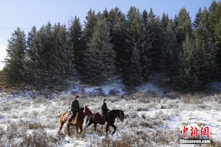 3月17日,位於(yu) 祁連山腹地的青海省海北藏族自治州祁連縣,女子管護隊員們(men) 騎馬巡山。 中新社記者 馬銘言 攝