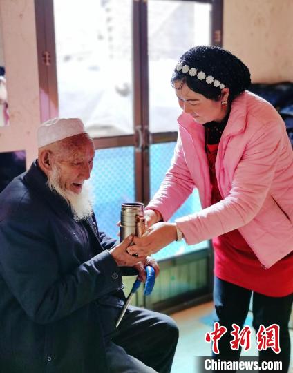 孔小紅不僅(jin) 善待自家老人,對她家隔壁的兩(liang) 位空巢老人也是如此。兩(liang) 位空巢老人孩子在西寧上班,平常無法照顧。孔小紅有時端碗飯過去,有時給他們(men) 洗洗衣服和床單,老人們(men) 身體(ti) 不適時,孔小紅總是忙前忙後。