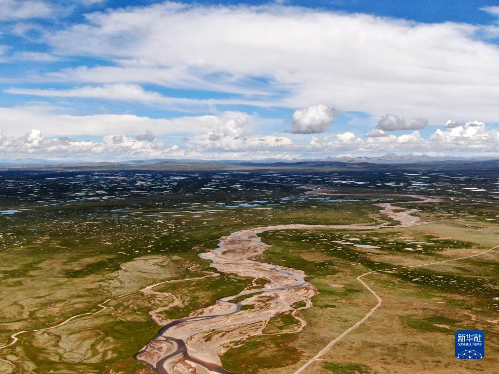 這是2021年7月23日拍攝的長江源地區的查旦濕地(無人機照片)。新華社記者 張龍 攝