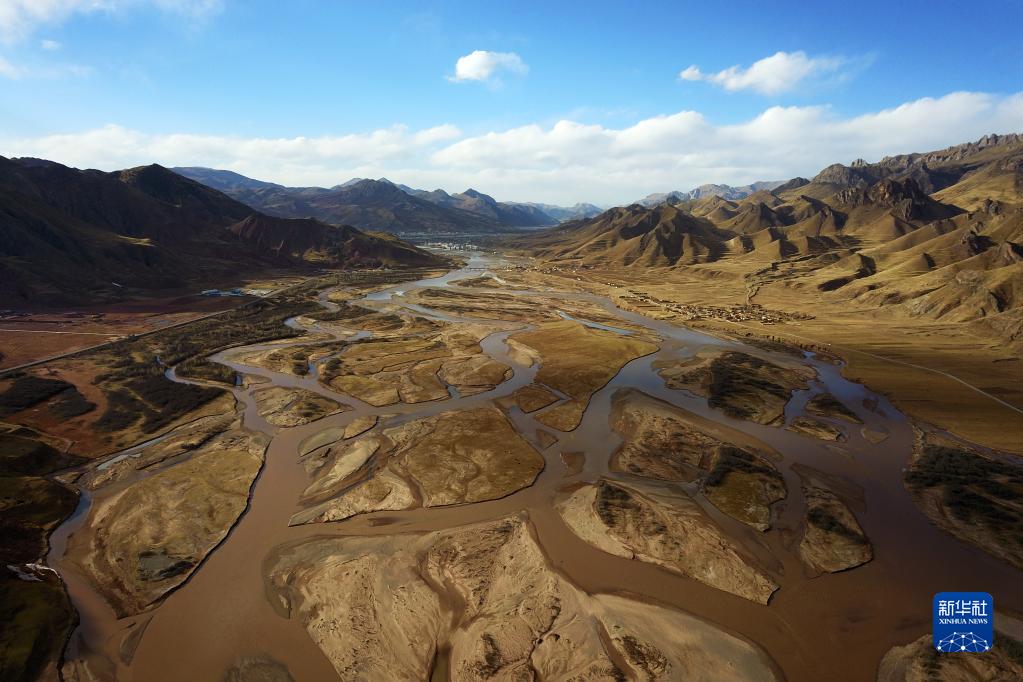 這是2022年3月20日在青海省玉樹藏族自治州囊謙縣境內(nei) 拍攝的瀾滄江上源紮曲河(無人機照片)。新華社記者 範培珅 攝