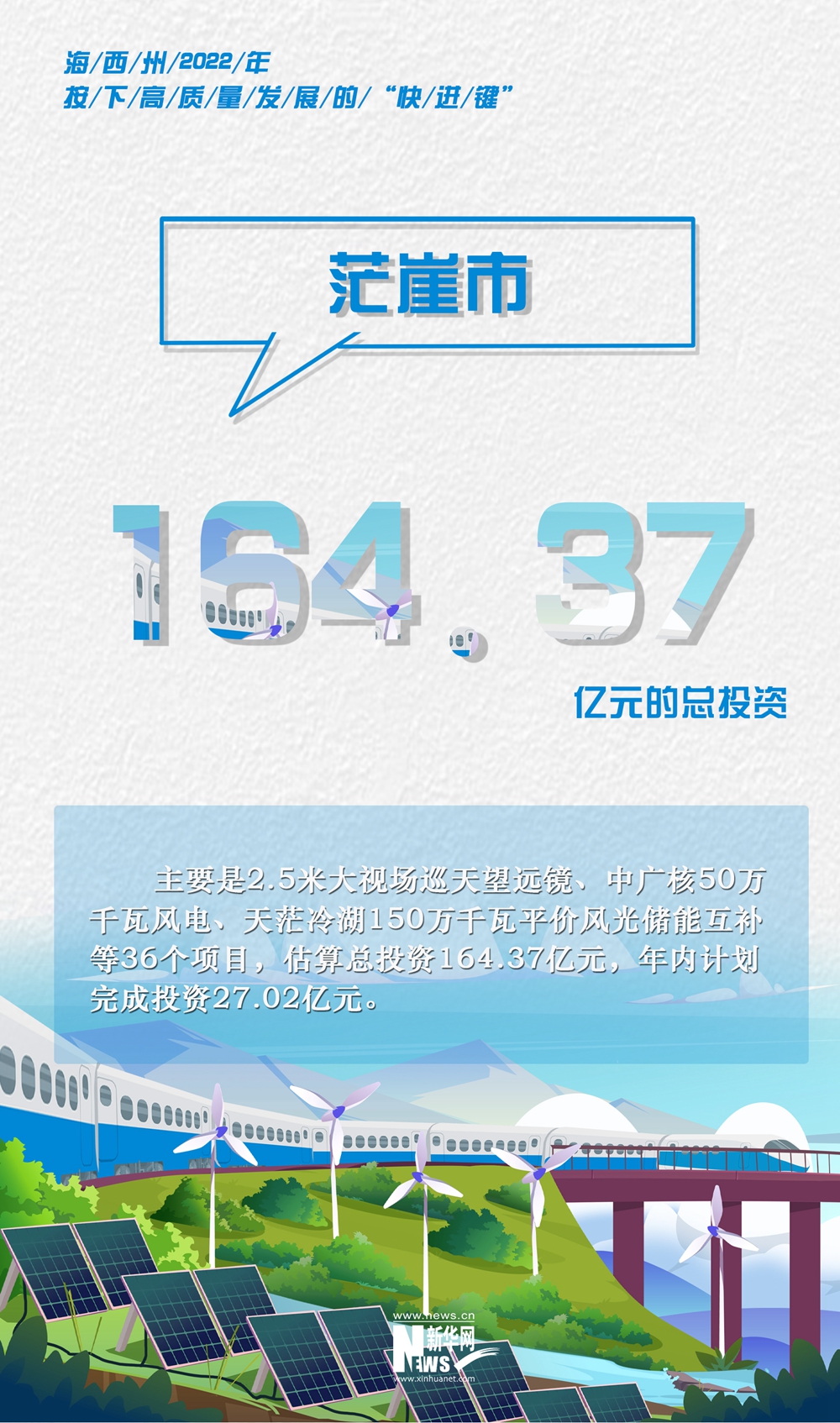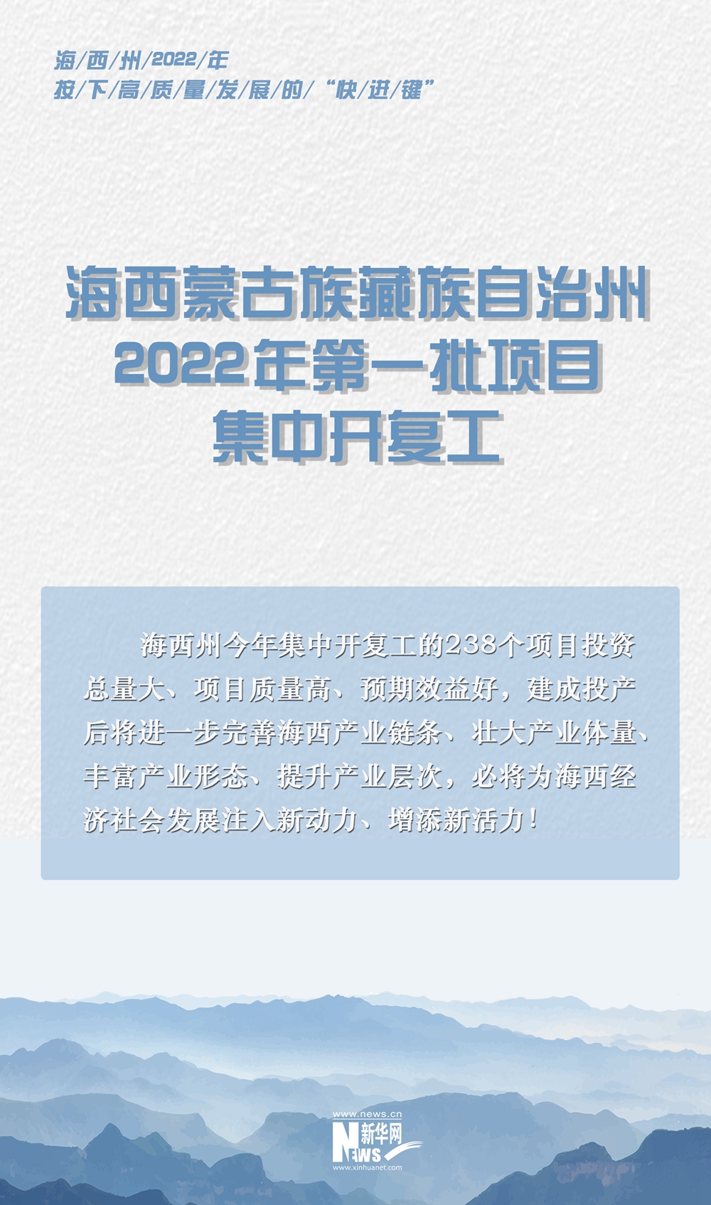 據悉,海西州此次共有238個項目集中開複工,涵蓋清潔能源、生態環保、基礎設施、現代服務、鄉村振興等領域,估算總投資1058.76億元,年內計劃完成投資164.22億元。[詳細]