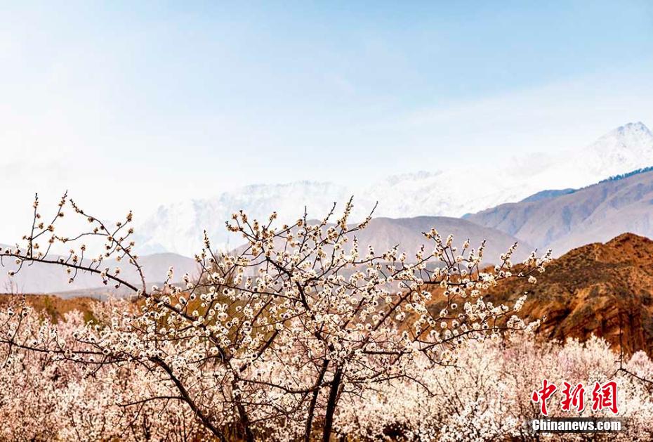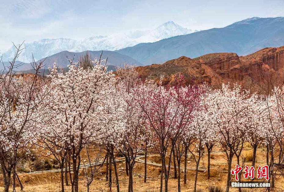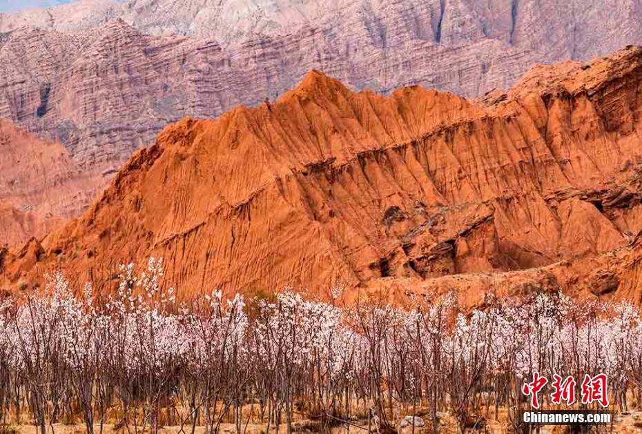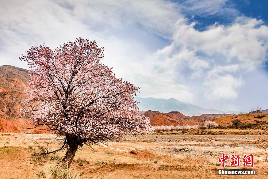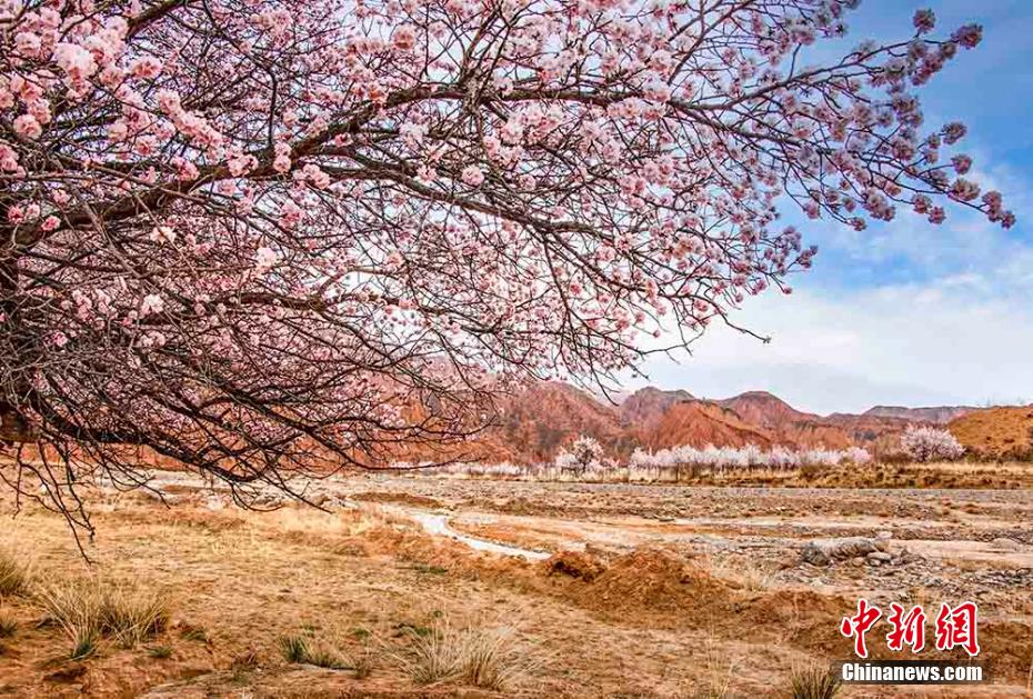 陽春三月,黃河岸畔,素有“高原小江南”之稱的青海省海南藏族自治州貴德縣尕讓鄉(xiang) 阿什貢村的杏花開滿了枝頭,丹霞地貌與(yu) 杏林互映,五彩繽紛,高原大地生機盎然。 趙海梅 攝