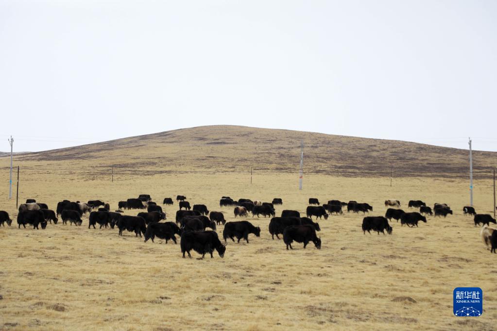 3月31日,青海省黃南藏族自治州河南蒙古族自治縣,一群犛牛在草原上吃草。新華社記者 王豔 攝