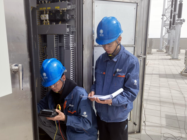 變電檢修人員對設備開展細致驗收。李斌 攝