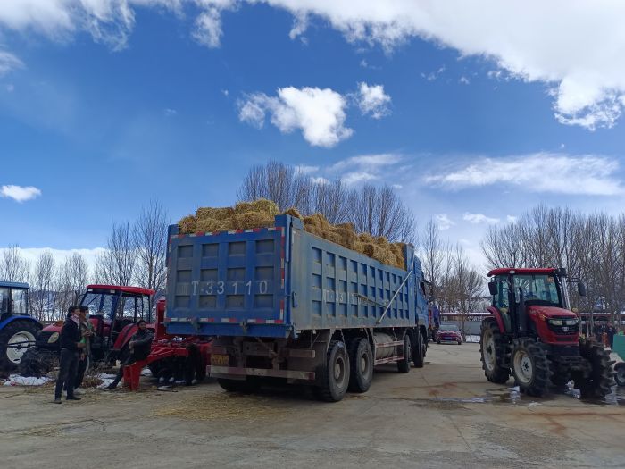 4月3日,理塘縣農(nong) 牧農(nong) 村和科技局從(cong) 康南抗災保畜打貯草基地緊急調撥150噸青幹草投入抗災保畜工作,中航安盟保險公司也向各牧業(ye) 鄉(xiang) 鎮捐贈了15噸青幹草。