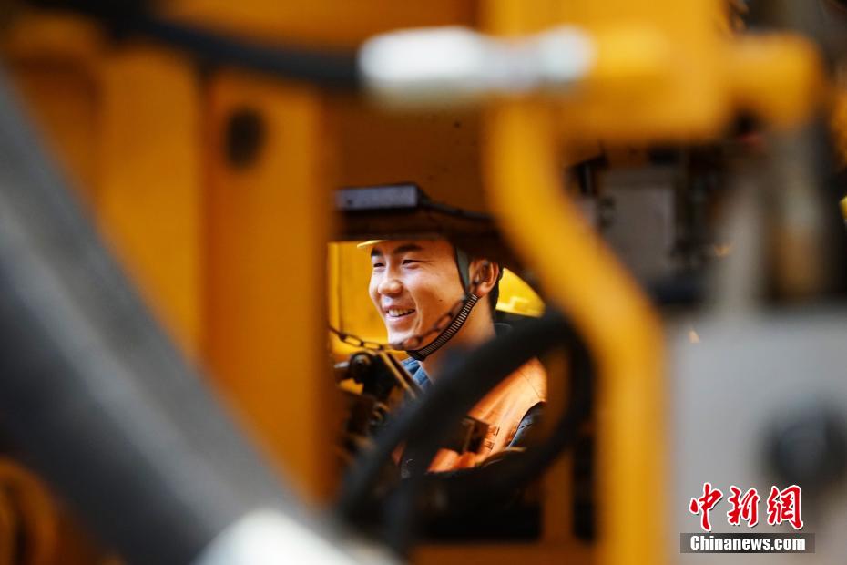圖為(wei) 一位檢修大型養(yang) 路機的職工。馬銘言 攝