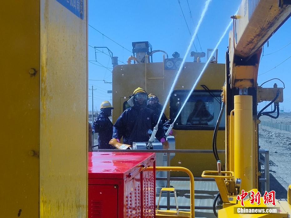 圖為(wei) 接觸網作業(ye) 車水炮在作業(ye) 。王文誠 攝
