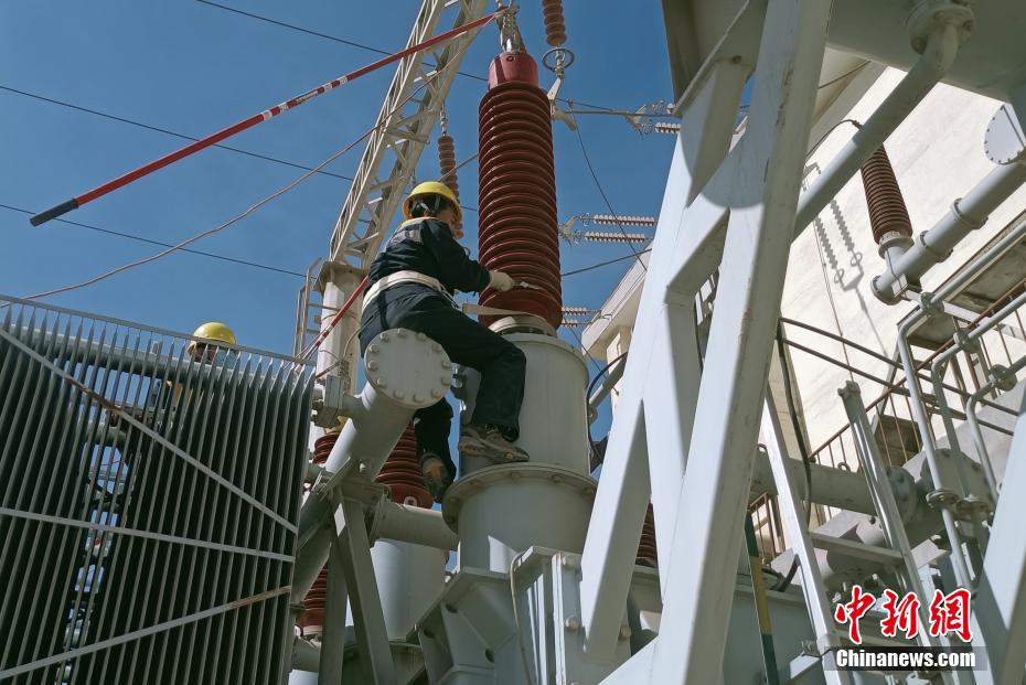 圖為(wei) 接觸網工對牽引變電所設備進行清洗。王文誠 攝