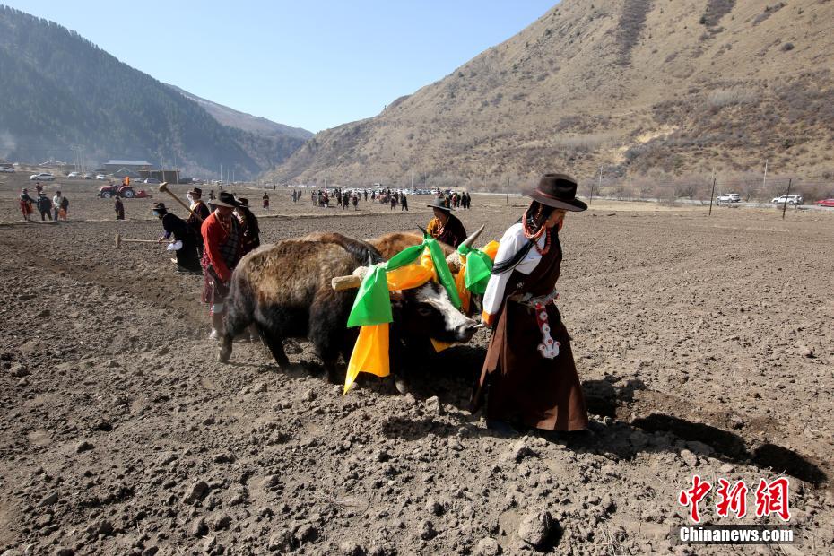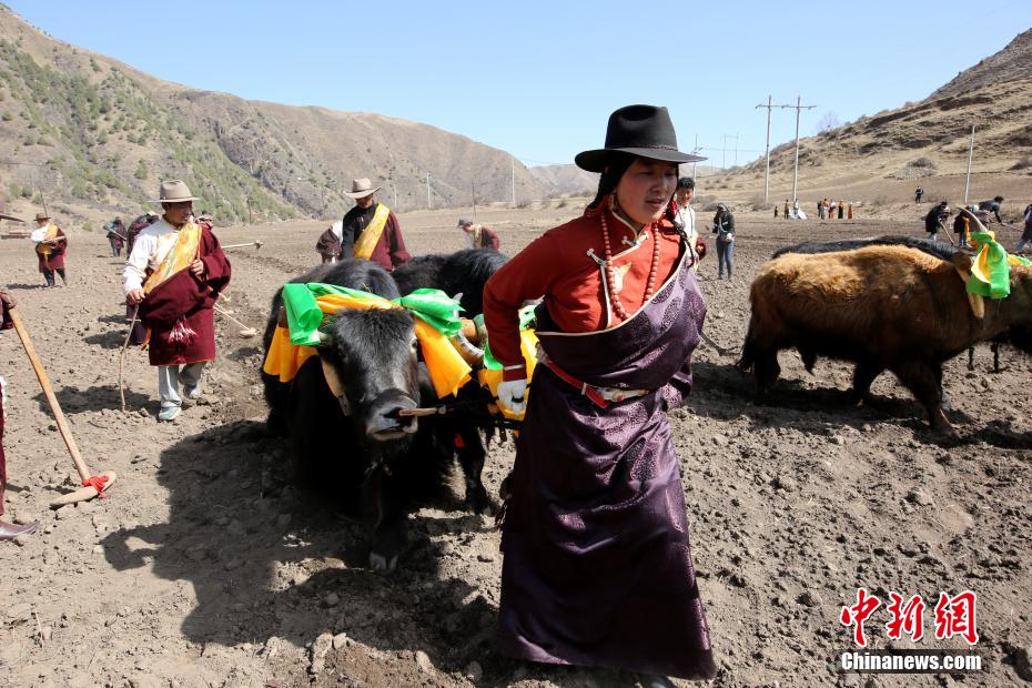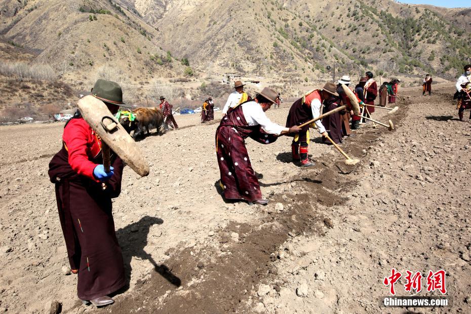 圖為(wei) 身著節日盛裝的民眾(zhong) 進行耕地。班瑪縣委宣傳(chuan) 部 供圖