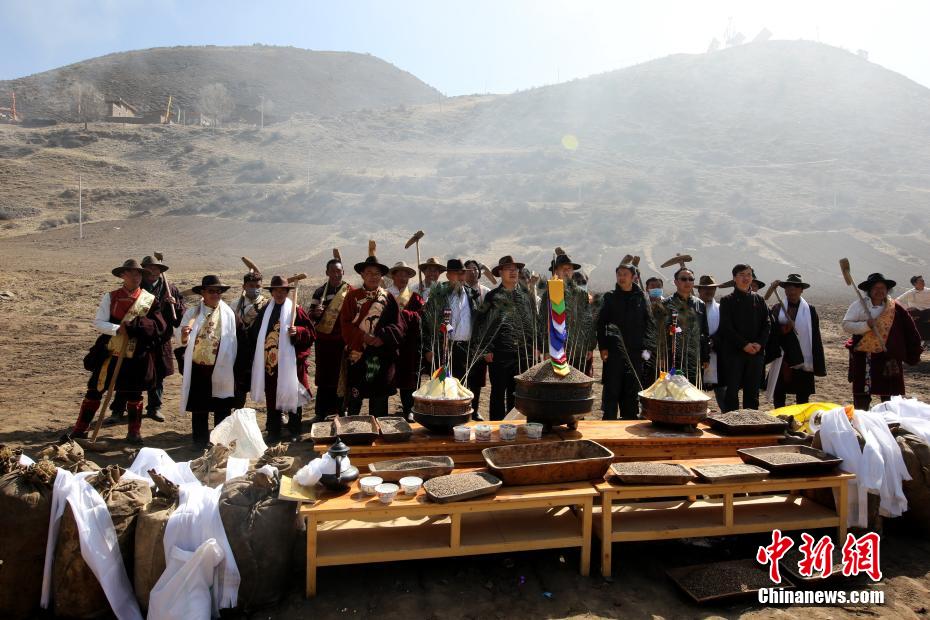 圖為(wei) 藏族民眾(zhong) 在條件最好的土地中擺放著象征吉祥的“雪麽(me) 項”和象征五穀豐(feng) 收的青稞種子。班瑪縣委宣傳(chuan) 部 供圖