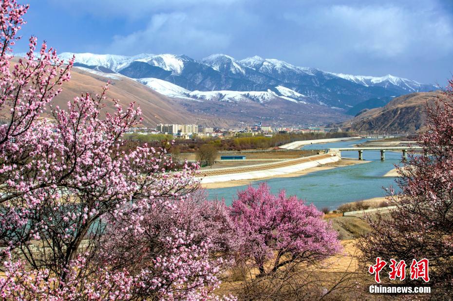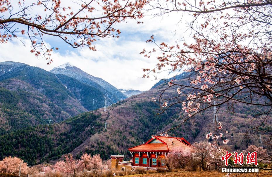 4月,豔陽下,四川省甘孜州道孚縣麻孜鄉(xiang) ,一簇簇粉紅色的杏花綻放,將高原藏家村寨裝點一新,繁花似錦,一派生機勃勃的景象。何行銘 攝