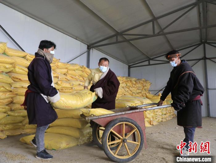 圖為(wei) 工作人員轉運飼料。張海麟 攝
