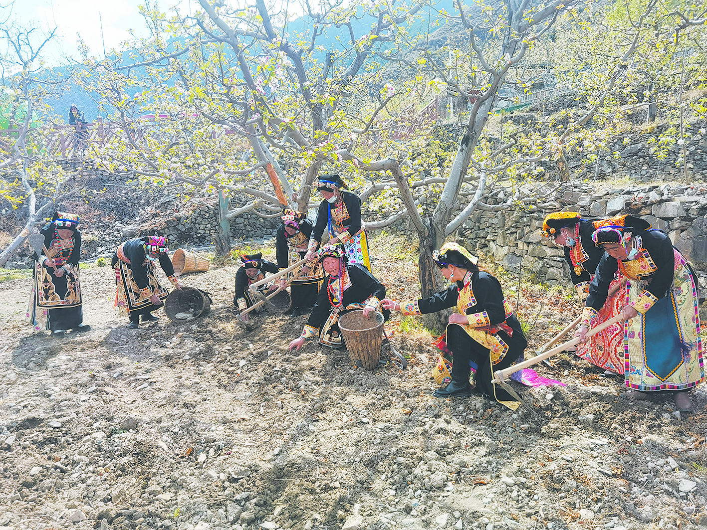 “老百姓看到蘋果花就看到了希望,期待蘋果產(chan) 量高,品質更好,能賣個(ge) 好價(jia) 錢,讓我們(men) 的日子越來越紅火。”村民朱學燕邊忙碌邊告訴記者。眼下正是蘋果樹急需補充營養(yang) 的時候,同朱學燕一般,在蘋果樹下,村民們(men) 正忙著施肥、鬆土、拔草、澆水。
