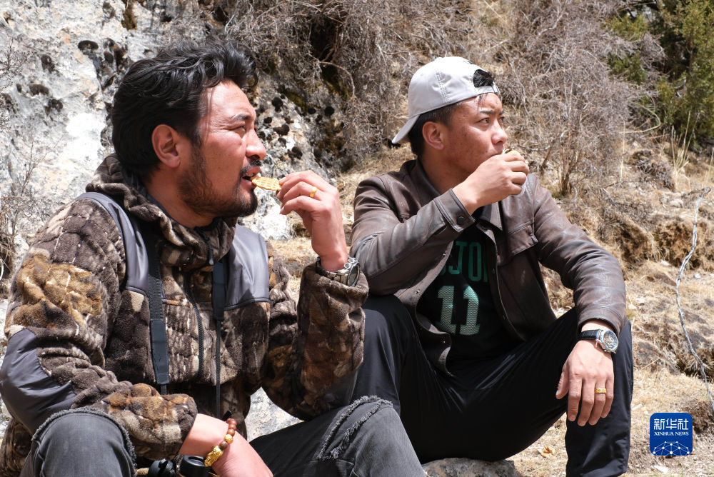 4月22日,生態管護員達傑(左)和尕次在休息。新華社記者 韓方方 攝