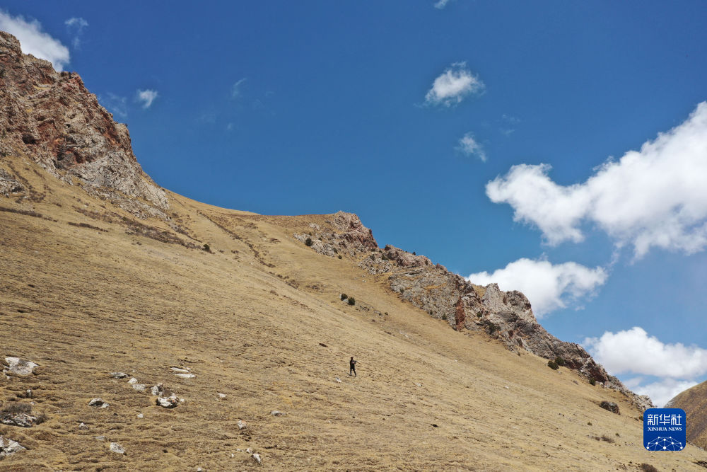4月22日,生態管護員達傑在巡山(無人機照片)。新華社記者 韓方方 攝