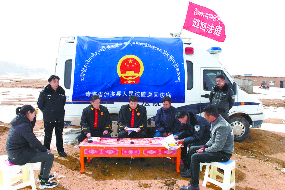 治多縣人民法院巡回法庭工作組在索加鄉(xiang) 對一起民事糾紛進行巡回審理。