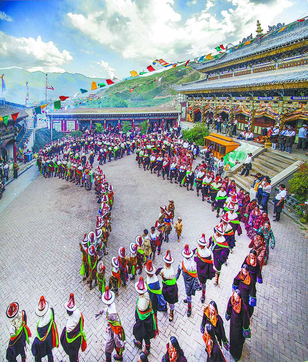 熱貢傳(chuan) 統六月會(hui) 以其獨特的民俗表演,每年吸引眾(zhong) 多省內(nei) 外攝影愛好者爭(zheng) 相走進熱貢取材,圖為(wei) 熱貢四合吉村落的六月會(hui) 盛況。 (本版圖片均為(wei) 通訊員張海麟攝)