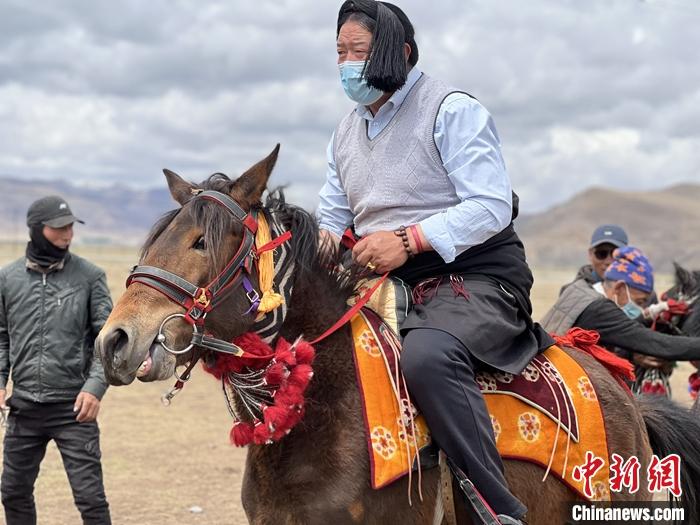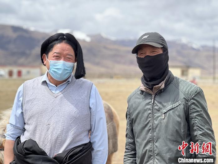 4月27日,才哇(左)在青海玉樹巴塘草原上與(yu) 好友聊天。 中新社記者 李江寧 攝